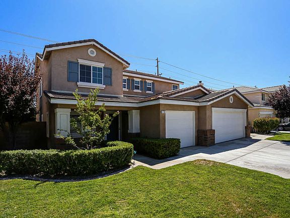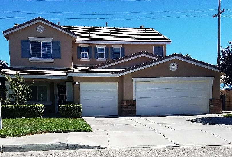Prime West Lancaster location with 5 bedrooms and 2.5 baths with a 3 car Garage! Near schools, park, shopping...minutes to the 14 fwy! Beautiful, tastefully decorated 2 story home with one bedroom and bath downstairs. Bedrooms are Extra Large! Perfect open space concept. This welcoming home offers custom paint throughout.. Beautiful upgraded tile flooring downstairs; Chefs Kitchen with center island and stainless steel appliances. The kitchen opens to the family rm with a modern stone fireplace complimented with an eye catching wood mantle.. (I see Christmas stockings). The Stairs compliment the stone fireplace with gorgous wood flooring and matching stone accents. Good size loft upstairs. Huge Master bedroom with an amazing view of the Desert/mountains. Masterbath with separate shower and jetted tub... Fully landscaped front and back. A must see home! Put it on your list...