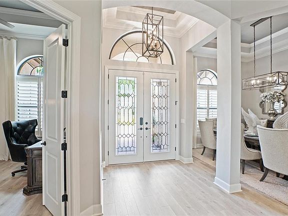 - Interior Features: Ceiling Fans(s), Eating Space In Kitchen, High Ceiling(s), Open Floorplan, Walk-In Closet(s), Crown Molding, Solid Wood Cabinets, Kitchen/Family Room Combo, Window Treatments, Coffered Ceiling(s)
