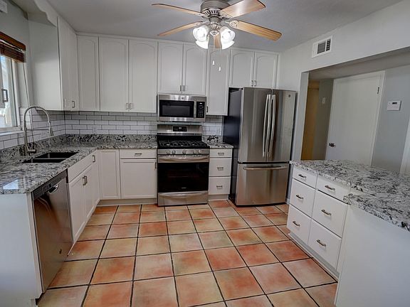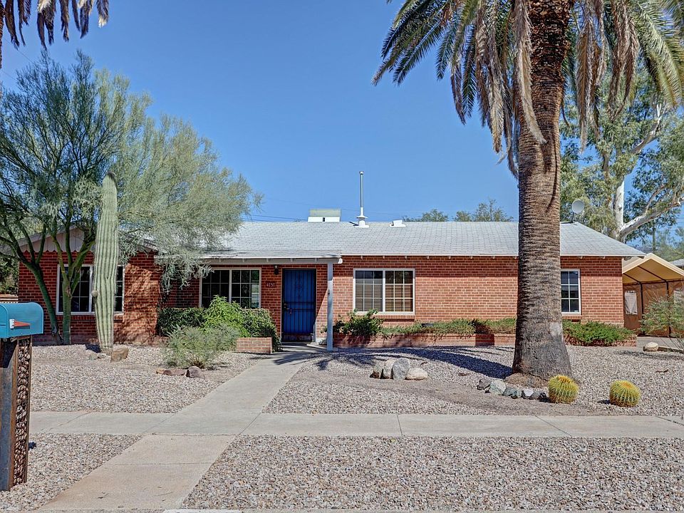 * Updated Mid-Century Modern Brick Charmer! Delightful curb appeal is just a hint of what's inside. 1664 sq ft, 3 beds/2 baths/1 car garage/ 15' x 30' workshop. Open floor plan - updated kitchen, dining area, family room & fireplace w/ wood hearth & beam. New paint in & out + trim, interior doors, modern lighting - new plumbing kitchen & baths. Kitchen cabinets painted white, new S/S appliances, double sink & goose neck faucet plus 5 burner gas stove & pantry closet. Baths - new tile, toilets & vanities. Large laundry room. Double pane windows w/warranty & security doors. Spacious backyard enclosed w/masonry wall, brick BBQ, fire pit, modern metal raised planters, new exterior motion detector lighting & covered patio. Special little home, great central location, move-in ready!