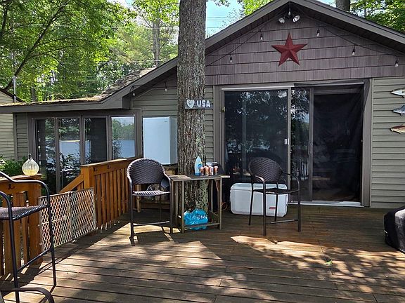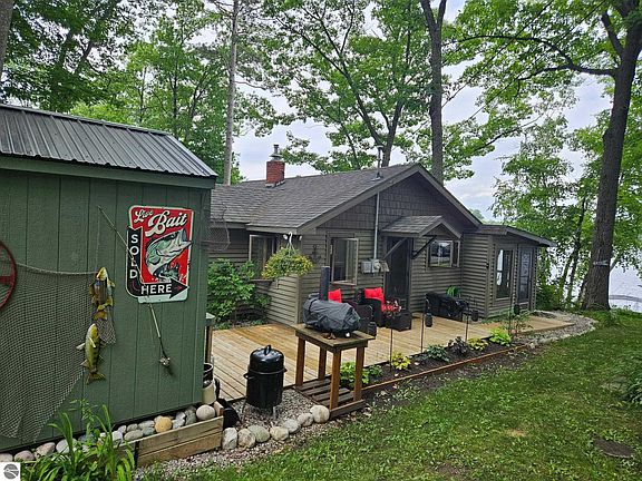 Charming 2-Bedroom Lakefront Cabin on All-Sports Long Lake Welcome to your up north dream getaway! This cozy 2-bedroom, 1-bath home offers 50 feet of pristine, sandy frontage on beautiful All-Sports Long Lake. Enjoy your own private, dock—perfect for boating, swimming, or casting a line on one of the area's best fishing lakes. Inside, you’ll fall in love with the warm knotty pine interior and stunning natural log beams throughout, creating that classic Up North cabin feel. The living area , perfect for relaxing after a day on the water. The kitchen is updated with stainless steel appliances, 2br, 1 bath w shower, sunroom/sleeping porch for over flow family and friends!and the home has received many modern upgrades including new windows and low-maintenance vinyl siding. The property is equipped with a 5-inch well and code-compliant septic system. Surveyed.Step outside to a spacious multi level deck overlooking the lake—an ideal spot to relax with a drink and take in breathtaking sunsets.rear seating area too for another gret view!2 Large sheds for toys!and needed storage. Low-maintenance and full of rustic charm, this “dollhouse” is ready for you to unpack your bags and start making memories. Whether you're looking for a peaceful retreat or an active waterfront lifestyle, this is the cabin everyone dreams of! Immediate occupancy, move right in at closing, start enjoying summer time in Northern Michigan!