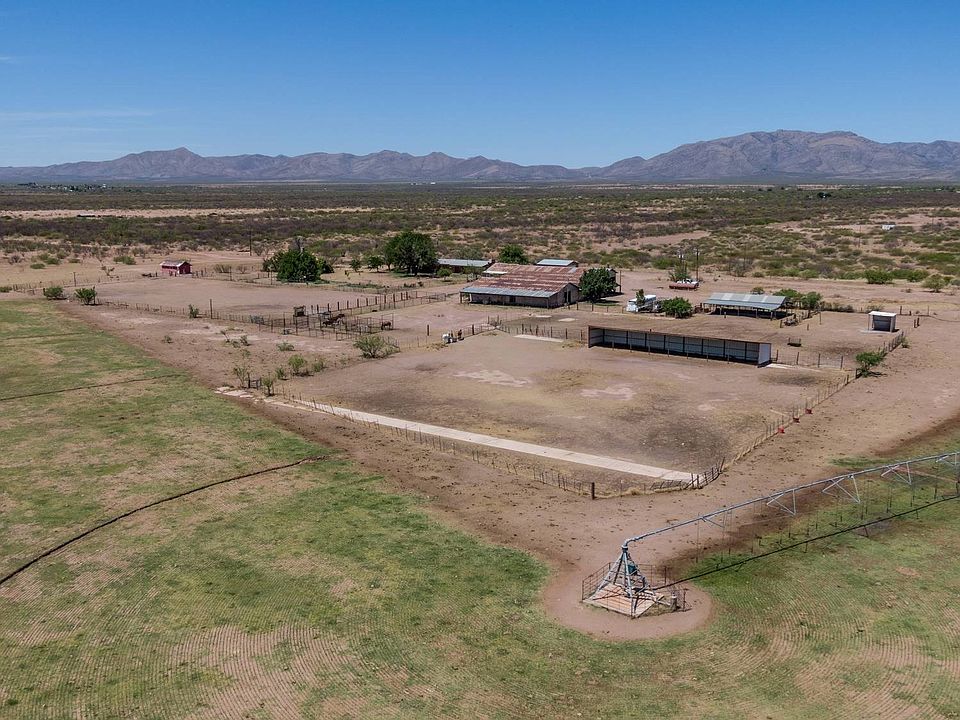 Drought proof your cattle operation with 76 acres of irrigated pasture.  56 Acres under two Zimmatic pivots and 20 additional acres of irrigated.   Custom ranch home, guest house, workshop, garage, green house, two large steel and block barns, large loafing/hay shed, covered horse pens, steel corrals, arena, mature trees, and expansive mountain views. Situated between the Mule and Swisshelm Mountains in the scenic Sulphur Springs Valley you will find McNeal and the 5L Cattle Co. farm currently being operated as a cow/calf outfit.  At the headquarters you will find an up-to-date custom, three bedroom, two bath, 1899 +/- s. f. home with a floor to ceiling fireplace in the living room; custom tile work in the kitchen and two bathrooms; custom wood trim and exposed beams; hardwood and Saltillo tile flooring; an office and a lovely sunroom off the master bedroom suite.  There is also a guest house that could be rented out as vacation rental for additional income.  To round out the headquarters there is a two-car garage, workshop, green house, garden, fruit trees, loafing/hay shed, a large sheet metal and slump block barn, covered horse pens, pipe and sucker rod corrals and arena. The farm has two pivots one is 32 acres and the second is 24 acres.  In addition, there is another 20 acres that can be irrigated for a total of 76 acres with water rights.  The pivots are currently in permanent pasture for cattle.  In addition to the two pivot pastures, there are four 40-acre pastures of native desert vegetation all with good perimeter fencing.  There are four wells, one domestic and three irrigation wells.  The main well is 260 feet deep with static water at 70 feet that pumps 425 gpm, a second irrigation well is at about the same depth. Many possibilities exist for this farm.  It can continue to be used as a cow/calf operation, for commercial or purebred cattle; custom grass-fed beef operation; horse farm; local hay farm; crop farm; grapes or orchard property for pecans or perhaps an event venue for weddings or guest ranch. A detailed brochure is available upon request.