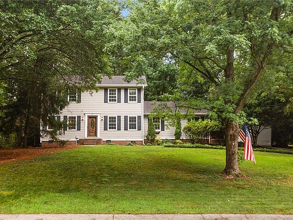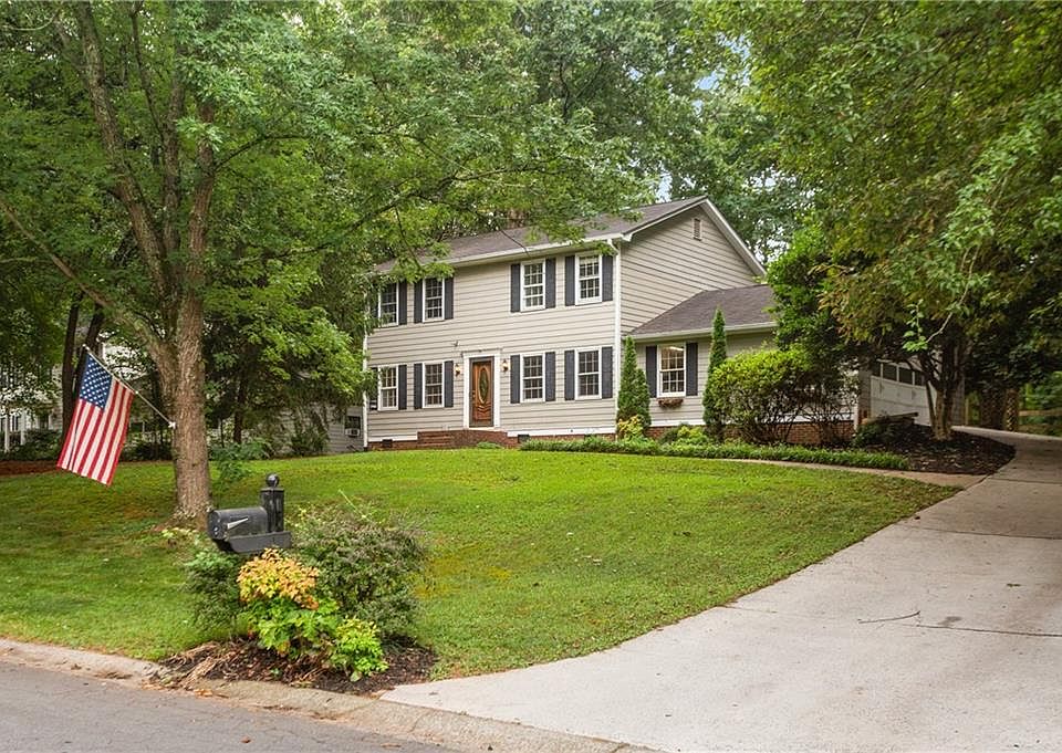 Great property in Greens Crossing in an awesome school district! Beautiful, traditional style home featuring large rooms throughout and new interior paint and new carpet as of June 30, 2022. The main level features a Living Room, Dining Room, Kitchen with Breakfast Area, Family Room with hardwoods and fireplace, Laundry Room and Half Bath off of 2 Car Garage with utility/storage closet and work bench. The upper level features 3 very large bedrooms, walk-in closets, 2 full baths and linen closet in hall. 2 New HVAC units installed in 2014 - last service June 2022. New wood fence and backyard patio installed in May 2022. Large wooded lot. Great schools and shopping nearby. Close to I-75 and I-575. No blind offers.