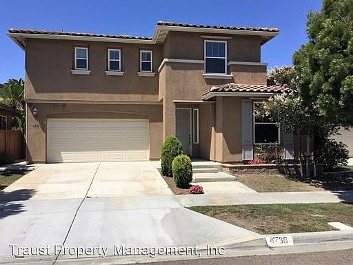 4 BD/3 BA w/DOWNSTAIRS BED/BATH home in Carlsbad with A/C!! - AVAILABLE TO VIEW, Move-in April 2nd or later. Newer Carlsbad Home for rent (Ravinia Development) Approx. 2597 sq.ft, 4BR, 3BA, 2CAR. Built in 2006, newer home in the upscale Ravinia development * Brand new A/C, and ceiling fans in every bedroom to keep you nice and cool! Light, bright open floor plan featuring a downstairs bedroom and bath, 3 bedrooms upstairs with office/loft area plus a separate laundry room with gas dryer hook up Dining/living room with dramatic high ceiling Large family room with wood-burning fireplace Open kitchen with breakfast nook, beautiful maple cabinets * Kitchen will have brand new dishwasher and stove top!! Large Master Bedroom with two walk in closets, double vanity with dual sinks, shower and whirlpool tub Beautifully landscaped backyard with custom patio cover and fruit trees Recessed lighting and ceiling fans throughout the home Energy efficient home with double pane/storm windows and dimmer switches Community pool & spa within development Easy access to Mt. Calavera hiking trails, golf courses, shopping, dining, and community parks Close to Calavera Hills Community Park Carlsbad School District. Walking distance to the new Sage Creek High School Security deposit $3,500. Pets allowed w/Owner approval and additional deposit. Contact Frank Lucente, Property Manager, for additional information or to schedule a viewing. (760) 496-7969 Traust Property Management No Pets Allowed (RLNE3923795)