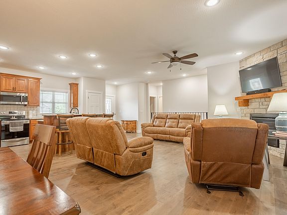 This home is immaculate ! Just beautiful setting and gorgeous inside. finished walk out basement in Ozark Mo ! Short zip to Branson dining and entertainment or Springfield Mo. Home offer 5 bedrooms, 3 full baths fireplace in living room,, 3 car attached garage with coating on concrete, open kitchen dining area with granite counters, split bedroom plan, wooden shelving in closets, relaxing view of the trees from upstairs windows, privacy fenced back yard with patio and deck on upper level to enjoy your morning coffee or summer cook outs! Home is spotless and well maintained.Lots to see here you wont be disappointed. Subdivision pool and play area.