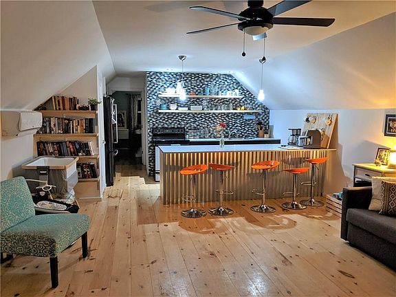 Beautiful one bedroom flat above a 4+ garage would make a cozy first home, or perfect bachelor pad. Newer contemporary kitchen with island is open to the living room. Beautiful light hardwood floors flow throughout. This one acre lot makes a great area to entertain with pergola and fire pit as well. Plenty of room to add a second or third bedroom in garage if desired. HVAC 3 yrs old, Hot water heater NEW.
