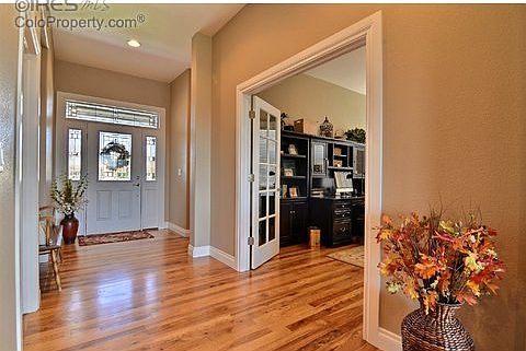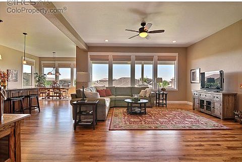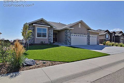 Custom ranch w/ finished walk out basement offering mountain views. Gourmet kitchen w/ center island, cook top, double ovens & pantry. Flowing/open floor plan, abundant natural light, covered back deck & professionally landscaping. Designer finishes- slab granite, hard wood floors, heated tile master bathroom flooring. Spacious walk in closets, hand-crafted built in book cases and displays. Large 3 car garage. 2x6 construction, 2 furnaces(high efficiency). Fantastic community. Loveland Schools