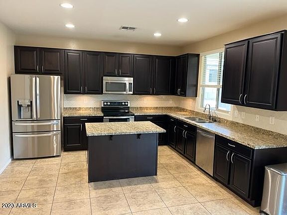 Updated and ready for move-in.The spacious kitchen features an island, granite countertops, cabinet lighting, large pantry, and stainless-steel appliances.The family room and kitchen overlooks the custom backyard which is the perfect place to spend your days with a large, covered patio, fire pit and pergola lighting.The bedrooms are upstairs including a converted theater room.The master bedroom has a walk-in closet and updated bathroom.The laundry is upstairs. This beautiful home is close to ASU West and is convenient to shopping and freeway access.The kitchen stove and water heater are brand new. In the last two years, the garage cabinets, cabinets in the backyard, Epoxy garage, Granite countertops in both upstairs bathrooms, cabinets with granite countertops in the living room. Conveniently located close to shopping dining, freeway access and walking distance to Arizona State University West Campus.