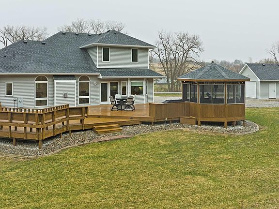 Open House Friday 4/22 4-7PM. Must See Private Acreage on 3.68 acres (w/paved roads) backs to woods. Impeccably kept 1.5 story. Welcoming Front Porch. "Must Have" main floor Office w/ french doors. Gorgeous, remodeled kitchen & informal dining w/wall of windows! Room to host any gathering w/quartz counter tops and island, spacious pantry. Large, main floor primary w/ updated ensuite including remodeled shower, dual sinks with newer faucet, new flooring & a whirlpool tub. Cozy family room w/ beautiful fireplace and bright windows. Convenient main floor laundry. 2nd floor offers three (3) spacious and unique bedrooms and a full updated bathroom. Large walk-out basement has a rough-in and egress window, making it the perfect canvas for creating the space you want. There is even a designated storm shelter or maybe a wine-cellar. And the real gem is the back yard. Relax and enjoy the serenity from the large custom deck or inside the fabulous gazebo. 22x30 heated outbuilding.