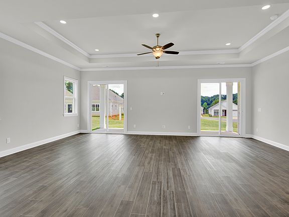 Spacious new construction home! 10' ceilings throughout main level. Open concept floor plan. Kitchen features walk-in pantry, oversized island and plenty of storage. Living room with tray ceiling and ceiling fan. Primary suite is located on the main level with a tray ceiling and access to spacious bath with walk-in shower. Generous walk-in closet with access to the laundry room. Upstairs has two bedrooms as well as a flex space great for storage or a play room. Lawn Maintenance included! Convenient to shopping and restaurants. Wonderful opportunity to be the first to enjoy this brand new home.