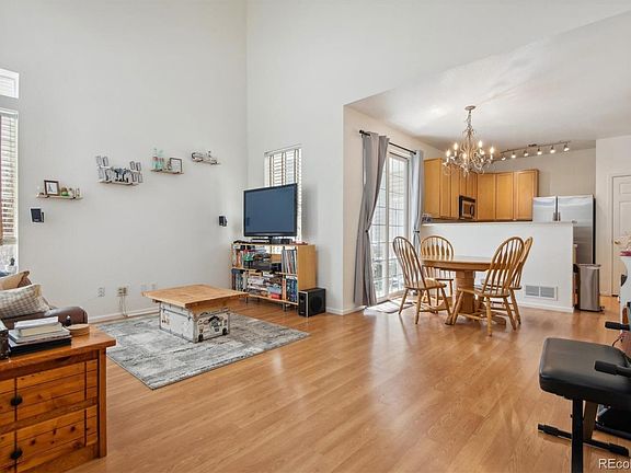 Welcome to your newly updated 2-story townhome nestled in Garrison Village Condos in the heart of Wheat Ridge! This charming end unit townhome sits conveniently located. Ample parking with driveway leading to an oversized one-car garage and covered patio with storage closet, nice spot for a grill and outdoor space. Well maintained landscaped throughout community with mature trees. Step inside to discover a voluminous, airy layout with open concept. The living room offers laminate hard surface wood-look floors, soaring vaulted ceilings, and abundant natural light pouring in. Entertain friends as the dining room seamlessly flows into the living area, granting easy access to both the kitchen and the back patio through sliding doors. This practical kitchen offers a small pantry, eat up bar, including appliances: stove, refrigerator, microwave and dishwasher and complemented by loads of maple cabinets and neutral laminate countertops. A convenient half-bath on the main level, strategically positioned near the garage entrance, adds to the functional appeal. Upstairs you are welcomed to primary bedroom with large walk in closet, vaulted ceilings, and plush new carpet. Secondary bedroom and a full hall bath featuring a tub/shower combination. Upper level laundry room designed to accommodate side-by-side washer and dryer units included. Conveniently located mere minutes from Olde Town Arvada, Golden, and with easy access to I-70, this residence offers the perfect blend of suburban tranquility and urban accessibility. Enjoy leisurely strolls or bike rides to nearby restaurants, shops, or the light rail station, with downtown and mountain adventures just a short drive away. Schedule a private showing today to experience the epitome of Colorado living. Pets are welcome in the complex.