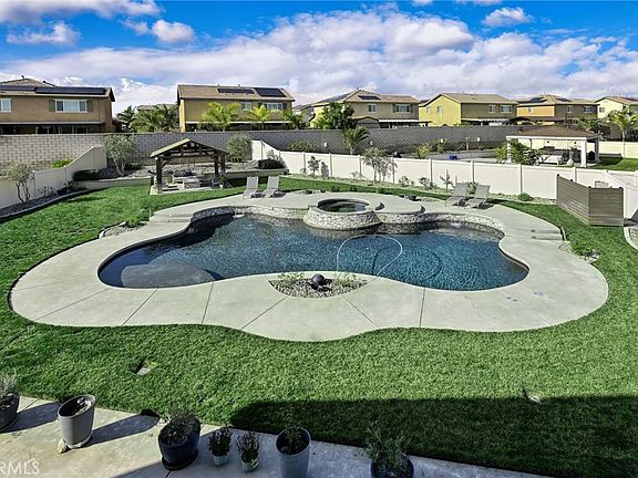 Resort style entertainers paradise situated in the Vintage community. This spacious fully upgraded home is perfect for entertaining while being warm and cozy for family living. The upgrades are extraordinary throughout featuring advanced smart technology living. Open floor plan throughout with large great room. Large lot with remote double gate access for RV/Boat parking. In-ground pool & spa with outdoor fire pit and gazebo. Pentair Intellicenter Pool Automation Control. 26 solar panel system. 2 Tesla powerwall home batteries. Automatic custom shades. Leviton Home Automation System - Security Alarm/Lighting/Shades/Garage and Gate Control. Security cameras. Prewired - Mesh Wireless Network System. Hardwired Network Cabling. Landscape audio. Landscape lighting. Zoned audio wiring. Great room 7.1 surround sound. Rachio smart sprinkler wireless. Tank less water heater. Custom flooring throughout. Granite countertops. Large kitchen with island and stainless steel appliances. Stove top and oven gourmet kitchen for family cooking. Walk in pantry. Gym/office area. Inside laundry. Full bedroom and bath downstairs. Large his and hers walk in closets. Large custom garage. Separate entertainment area lounge upstairs. This home truly checks every box, is turnkey and is one of kind. This is a great opportunity that doesn't come around often. Don't miss this one.