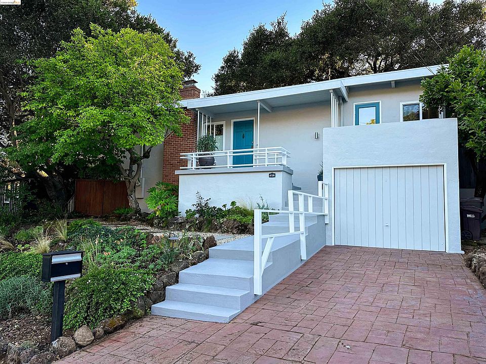 Leona Heights mid-century modern home with exposed beams, tongue & groove ceilings, and gleaming hardwood floors throughout. Updated kitchen with stainless steel appliances and new quartz counter tops leads out to the spacious, beautifully landscaped, and private backyard under a canopy of majestic oak trees. Relax in the hot tub with views of the Oakland hills and listen to the gently trickling waterwall. Enjoy the recently remodeled spa-like bathroom with double shower heads and heated tile floors. Other amenities include a gas log fireplace, dual paned windows, and stackable washer/dryer. 1 car attached garage. Plenty of extra space in the downstairs basement area – perfect for a workshop, workout room, or additional storage. Convenient location with easy access to I-580 & Hwy 13 freeways. Steps to excellent hiking in Leona canyon. Minutes to Lincoln Square shopping center with Safeway, CVS, Peet’s Coffee, Sparky’s Burgers and more!