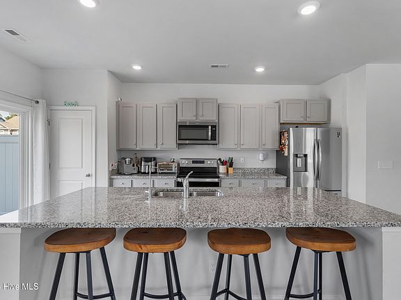 Exceptional End Unit in The Townes at Lewis Creek! Built in 2021, this like-new 3 bed, 2.5 bath corner townhome offers nearly 2,000 sq ft of bright, open living with no neighbor on one side and peaceful pond views. Enjoy wide hallways, tall ceilings, and a smart layout that lives like a single-family home—without the maintenance! The kitchen features quartz countertops, a huge center island, stainless steel appliances (all included!), and a walk-in pantry—perfect for hosting. Step outside to your private back deck for a quiet escape. Upstairs, the vaulted primary suite includes a large walk-in closet, double vanity, walk-in shower, and private water closet. Two additional bedrooms, a spacious full bath with double vanity, and a large laundry room complete the second floor. All this just 10 minutes from Wrightsville Beach, UNCW, and Mayfaire—don't miss it!