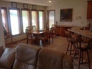 This 4bdr/3bath ranch home has a walkout that views the main channel. A 30/30 foot garage allows ample storage plus stairs accessing the attic for additional storage. A ground source heating system provides economical heating and cooling. A 10-zone irrigation system keeps the lawn green all summer. Beautiful granite countertops and 42 inch hickory cabinets make the kitchen most functional. A gas fireplace with TV cove above it accent the living and dining areas which are open to the kitchen. All rooms have ceiling fans and an intercom system. A wet bar with sink and refrigerator enhance the large lower level entertainment area with pool table. Large bedrooms currently have king sets in 3 of them. Outside, a gradual walkway (nearly level) leads to a 50' dock with a 8x16 foot 'L'. A 12x30 upper deck with concrete slab underneath provides ample seating for viewing the lake. Inside 25 windows and 3 sliders give a panoramic view of the lake. House exterior walls are 2x6 construction. (Listing 6205640 Confirmed 6/16/2013)