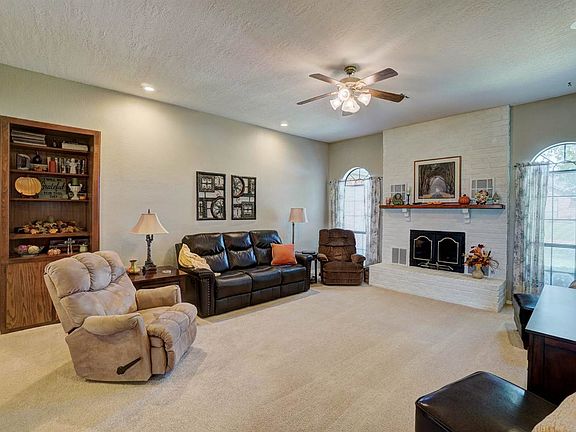 Absolutely beautiful one owner home with many updates. Separate formal entry. Huge open living area, 10 ft. ceilings, brick wood burning fireplace with gas starter. Totally updated kitchen, newer cabinets, beautiful granite countertops, tile backsplashes, gas stove, updated appliances, undermount sink, breakfast bar, large separate dining area. Secluded primary bedroom, 3/4 bath, large walk-in tiled shower, extra storage cabinets. All additional bedrooms are large, one with cathedral beamed ceiling. Professionally converted 4th bedroom/den, large walk-in closet/extra storage room. Floored attic. Huge covered patio, views of country back up to fields to enjoy. New roof 2020, nice fenced in yard, dog run, storage sheds, updated CH&A.