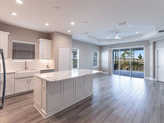 This extraordinary villa is a masterpiece, adorned with over $58,000 in luxurious builder upgrades, transforming every corner into a sanctuary of elegance. Step onto the exquisite wood grain tile flooring that flows through the main living areas, leading to an extended kitchen island topped with opulent custom quartz. The kitchen gleams with a stunning tile backsplash, state-of-the-art stainless steel appliances, and premium upgraded cabinets, all illuminated by sophisticated under-cabinet lighting. Look up to admire the tray ceiling, and step outside to the expansive lanai, where a gas stub awaits your outdoor grilling ambitions. The villa’s splendor continues with recessed lighting, pristine quartz counters in both bathrooms, and intricate mosaic tiles in the master shower, among other indulgent details. Canoe Creek is your private paradise, offering a peaceful escape from the urban rush while keeping you conveniently close to a plethora of amenities. Nestled near the charming areas of Lakewood Ranch and Ellenton, this exclusive community boasts a lagoon-style pool and spa, a grand clubhouse, a modern fitness room, Pickleball courts, a community kitchen, and a delightful dog park. Embrace nature at the enchanting Historic Rye Preserve and Lake Manatee, or immerse yourself in the cultural treasures at the Florida Railroad Museum just minutes away.
