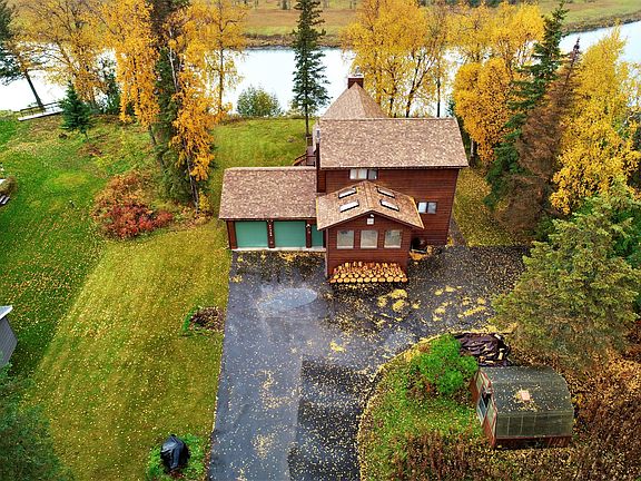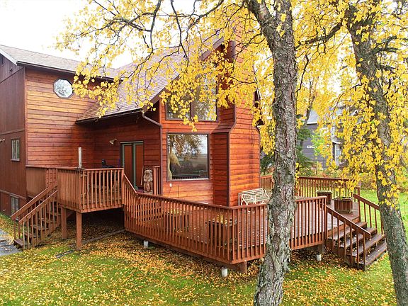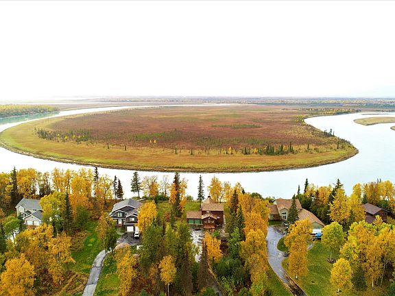River front home with a view of the Kenai River valley. This lovely home has the perfect setting day or night. Enjoy a large private bedroom retreat, large family room, sun room, huge deck and lots of paved parking for all your toys in a great neighborhood.