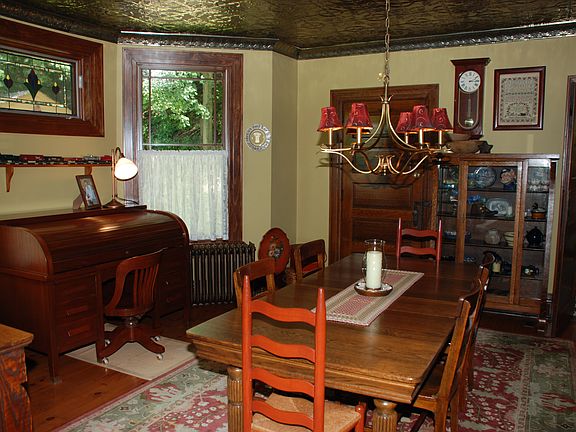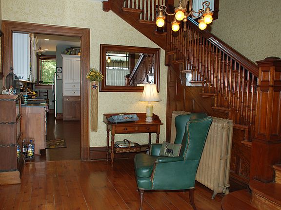 Beautiful 4 bedroom Victorian built in 1902, located in the heart of Leetsdale. Wrap around front porch overlooks Henle Park. Sits on a one acre lot enclosed by original stone walls. Home includes Amish kitchen with soapstone counter tops and back staircase, original woodwork, pocket doors between living and dining room, built in china cabinet, 4 fireplaces and Pella windows. All topped by a metal standing seam roof.