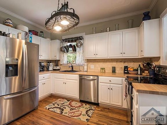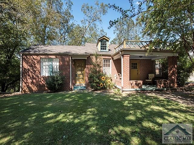 Beautifully restored 1920's brick home on one of Athens most classic historic streets. Wonderful historic neighborhood! 2 blocks from both Chase Street Elementary School, Chase Warehouse Arts District, Heirloom Restaurant, Urban Sanctuary Spa, and Boulevard Woods Park. This neighborhood conveniently borders the northwest edge of downtown and is an ideal walk-bike setting. House has just completed restoration of new kitchen with stainless appliances, butcher block counter, stone backsplash, sunroom with marble floors, laundry room with front load stackable units. Wood floors refinished, new lighting, paint, baths updated, artful wall of reclaimed wood in master bedroom creates large walk-in closet. There is a front porch, rear deck off sunroom, lower level patio off basement and a garage/workshop in back yard. This back yard is unusually large and lush for in-town, fairly private, tons of gardening or recreation potential! Unfinished rooms in basement with 2nd laundry area.Old timey 1 car wood garage/storage building.