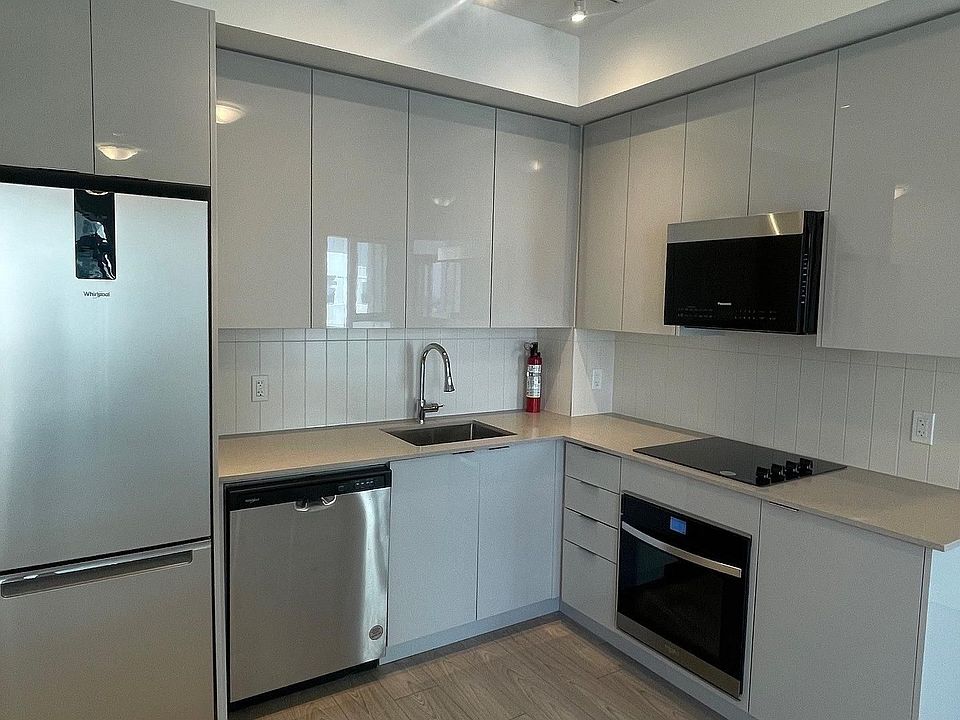 Welcome to this never-occupied 1-bedroom residence at Abeja Tower. This bright and airy suite features a contemporary open-concept design with impressive 10-foot ceilings and expansive windows that flood the space with natural light. Step out onto your private balcony and enjoy an open, attractive view. The kitchen is equipped with sleek, brand-new stainless steel appliances that blend modern style with everyday practicality. Ideally situated with convenient access to YRT transit, Vaughan Metropolitan Centre Subway Station, GO Transit, Highways 400and 407, Cortellucci Vaughan Hospital, Canada's Wonderland, and Vaughan Mills Shopping Centre.