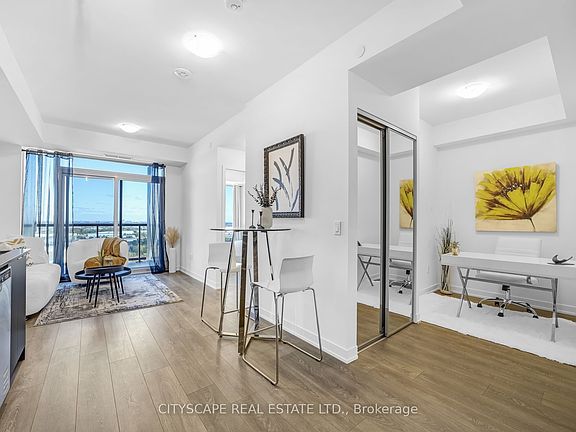 Welcome to this bright and spacious 1-bedroom plus den, 1-bathroom condo offering the perfect blend of style and functionality. The open-concept layout is filled with natural light from large windows, creating a warm and inviting atmosphere. The primary bedroom features generous closet space and beautiful views, while the versatile den is ideal for a home office, guest room, or reading nook. Enjoy a contemporary kitchen with sleek cabinetry, stainless steel appliances, and a convenient breakfast bar that flows into the living and dining area - perfect for entertaining or relaxing. Step out onto your private balcony to enjoy morning coffee or unwind after a long day.This well-maintained building offers great amenities including a fitness centre, party room, visitor parking, and secure access. Ideally located near major highways, public transit, Vaughan Mills Shopping Centre, Cortellucci Vaughan Hospital, and a wide range of restaurants and grocery stores. Whether you're a first-time buyer, downsizer, or investor, this unit offers modern living, unbeatable convenience, and exceptional value in one of Vaughan's most sought-after communities. Rogers highest speed internet package also included in maintenance fees.