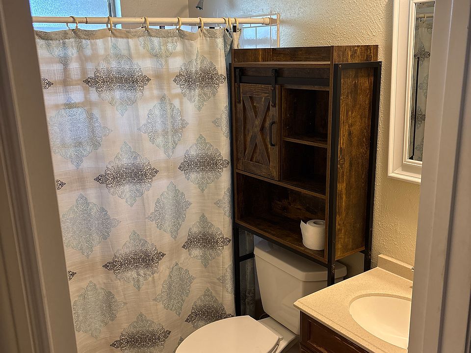 Private room with 2 windows and closet, additional storage space available in home. New hardwood floor and paint. Use of full kitchen, personal bathroom, living room and dining area. Backyard with privacy fence and fire pit. Parking space in carport. Quiet, nice neighbors. Close to shopping and restaurants. Free wifi. Laundry on site. No smoking, no drugs, no excessive drinking. Renter has use of carport for parking.