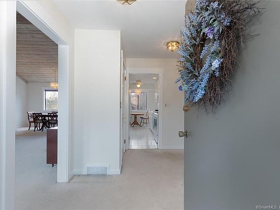 Welcome to a lovely Peabody unit which is easy to find, just off North Trail. As you approach, you'll notice that besides the 1 car garage, you have parking for an additional 5 cars/spaces directly in front of the garage door, for easy gatherings and family get togethers. You have the option of walking around to the front door or entering from the "bonus feature" lower level entry door next to the garage. This lower level space is sparkling, and newly-white painted with wall to wall tan carpet. You've got room for bridge, zoom with friends, and a family room area. Additional lower level features include a bedroom, full bathroom, plenty of closets, a laundry closet with slop sink & a utility/storage room. The Peabody model features a split staircase. The upper run currently has a chair lift in place. If one decides to enter via the front door, you'll have passed an oversized deck as you approach the door. Keep coming to that front door & you'll enter and immediately feel the expansive living room/dining room which opens to the kitchen. The living room features a cathedral ceiling and fireplace with brick mantle. Light colored barn board adds style to this space. The white kitchen is bright and welcoming. There is a den that can double as a 2nd bedroom on the main floor. The master bedroom suite is lovely with a walk in closet & full bathroom. The striking feature is the natural light. The unit's windows all face the south side of the home. District Tax is $499.62 quarterly.