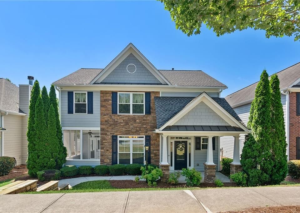 Beautiful 3bed/2.5bath home located in the heart of Suwanee! Inviting front porch and entrance. Remodeled kitchen with white cabinets, stainless steel appliances, and granite countertops. Eat-in breakfast area with french doors and access to charming front screened-in porch. Spacious living room with wood burning fireplace and access to backyard patio. Separate dining room with convenient access to kitchen. Hardwoods throughout main level. Oversized primary bedroom upstairs with sitting area, updated bathroom with double-vanity, and large walk-in closet. Two additional upstairs bedrooms with french door closets. Finished garage flooring! This home is a must see in a remarkable City of Suwanee neighborhood! North Gwinnett Schools, Library, and Suwanee Town Center nearby!