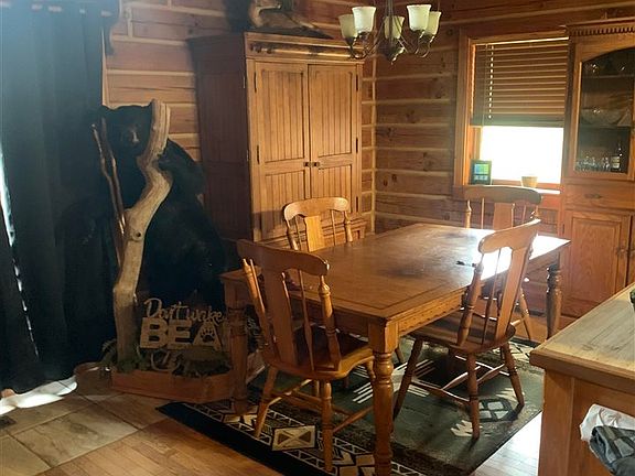 Looking for a farm close to town? Look no further! This custom made cabin offers 65 acres of land along with 3 bedrooms and 3 full baths! Inside you will find hardwood floors beautiful fireplace and open floor plan with Trex decking on a wrap around porch. Privacy and wildlife is at your fingertips! Outside is a nice size barn with woodworking shop, and another medium size barn with farm implements for the tractor that stays with the home. Seller says there's timber value on the acreage as well. Motivated and ready to sell!
