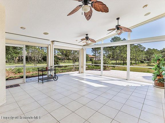 STUNNING Custom Ryland Bluebird Model Home in The Wellington at Seven Hills, a 24/7 Guard Greeted Gated 55+ Community. Adult Living Vacation Style with a 15,000 SQ Ft Clubhouse Complex that consists of a Heated Community Pool & Spa, Tennis, Pickleball, Bocce Courts, Computer Room, Fitness Center, Billiard Room, Bar & Grill, Ballroom, and Craft Room. Check out the Video of this beautiful Community! Going out of town? No worries! The home's exterior is maintained by the HOA. Fees include Mowing, Lawn Fertilizing, Weeding, Mulching, Trimming, and Maintaining Sprinkler Heads. HOA will replace the roof (1x) and paint the exterior every 10 Years. Also Included in the HOA Fees are Street & Common Area Maintenance, Gated Security, Roving Patrols, Digital Cable, Internet & Wi-Fi. This Upgraded & Meticulously Maintained 3/2/2 Patio Home comes with 1,962 SQ Ft of Living Area / 2,796 SQ Ft Total Under Roof and is located on a Corner Lot with Sidewalks. Park on a designer driveway and enter through the Leaded Glass Door with Transom Window into the Open Floor Plan with Vaulted Ceiling. Love the Front Bay Window in the Living Room which is Right off of the Foyer & Dining Room with Chandelier (See attached floor plan). Kitchen offers Island/Breakfast Bar, Quartz Counters with Tiled Backsplash, Wood Cabinets with Pull Out Drawers, & Pantry. Nice upgrades throughout include Custom Window Treatments, electronic roll down Hurricane Shutters that secure all doors and windows with the touch of a few buttons (garage door is protected with manual shutters), Surround Sound, Pillars, and Plant Shelves. The Master Suite offers a Walk In Closet + Additional Closet & Linen Closet in the Bathroom, Walk in Shower with Bar & Seat + Wood Cabinet with Dual Sinks & Quartz Counters. Split Bedroom Plan with Bedroom 2 & 3 has a Guest Bathroom (Wood Cabinet with Quartz Counter, Tub/Shower with Bar) separate from the Master Suite for privacy. Laundry Room has Washer, Dryer, Utility Sink & Cabinets. Two Car Garage is Air Conditioned & has an Epoxy Floor. Do You Love to Entertain or Just Enjoy a Peaceful Setting? You will adore the 400 SQ Ft screened in entertainment area with 3 ceiling fans, Automatic Roll Down Shade and Hurricane Shutters, and Large outdoor Patio & Walkway complimented with designer pavers. Enjoy plenty of privacy as there are no neighbors behind you! This gorgeous home will sell fast, come see it today!