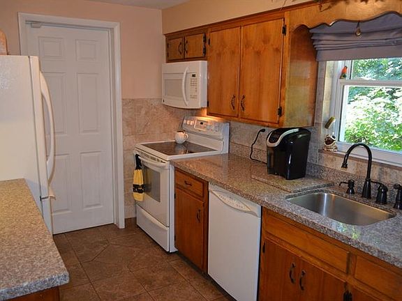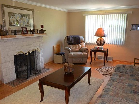 Many updates, windows, carpeting, laminate floors, finished game room with kitchenette, media room area, laundry, full bath and another larger room, great for in law apartment or teen area. Also leads out to the privacy of the back yard & covered back patio/deck area. Master suite includes a full sitting room and huge walk in closet. Furnace and air were updated. Level entry to the front door. Granite kitchen counter tops, updated ceramic floor and back splash, bathroom updated tub and wainscot.