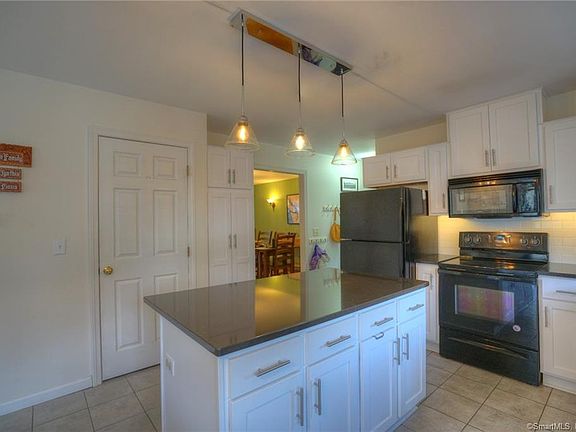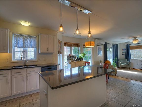 Move-in ready 4 bedroom Colonial with large covered front porch has 2 full baths and 2,894 sf on 0.28 acres with a 2-car attached garage in a desirable neighborhood! As you enter the home, you will find the formal dining room to the left and the Great room with a wood burning fireplace to the right of the foyer; an ideal sitting room. At the back of the home is an open floor layout with an eat-in kitchen that displays a center island and white cabinetry, a dining area by a beautiful bow window and the living room has a glass slider that opens to the backyard patio. Upstairs are 4 bedrooms and a communal full bath with double sinks. Two of the bedrooms have double closets and there is a walk-in closet and full bath in the Primary bedroom complete with a stall shower and double sinks as well. On the lower level, there is additional living space in the full basement that is partially finished with an office and large family room. Home is less than a mile from downtown Mystic! Lined with wonderful shops and local eateries.