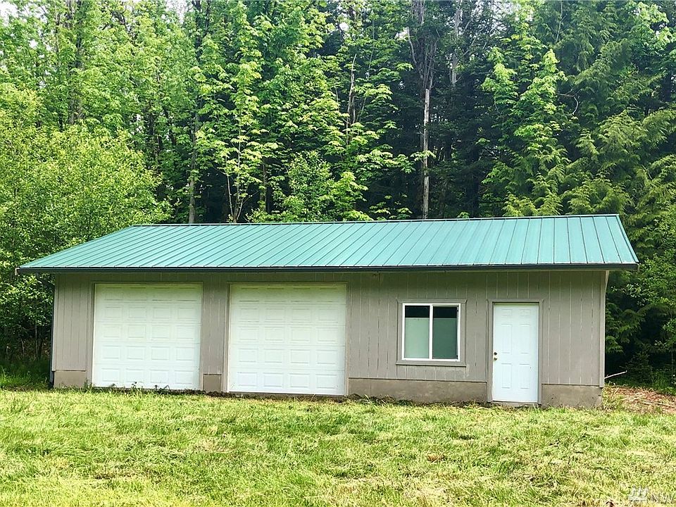 At just over 5 acres this private parcel includes a 1200 SF shop/garage w/2 bays & separate office area. The interior is fully sheet rocked, & wired w/a 200 amp service & a 240V RV hook up. There is also an additional 200 amp service for your future home. Seller has a septic design & the well is already in for you. A nice level building site has been cleared for a daylight basement home. Bring your builder & your plans & start your new custom home or your private weekend retreat today.