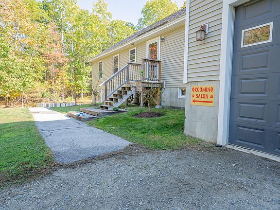 A walkout lower level includes a flexible finished space, currently used as a dog grooming studio, easily adaptable to a wellness or massage suite, home office, art studio, or boutique business—ideal for a functional home-based workspace. Tucked in the woods, a separate insulated writer's cabin with its own wood stove provides a private creative retreat, meditation spot, or reading nook.