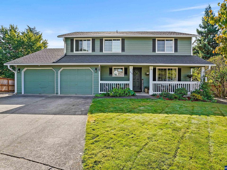 Desired S Salem cul-de-sac & almost 2300sqft! Close to Wright & Judson. This home is updated & turnkey. (newer roof, siding, int/ext paint, HVAC, gutters/guards, eng hw flooring & appliances) Enjoy entertaining with formal & informal living areas. Open kit w/island & built-in service bar. The primary suite features a modern tiled walk-in shower & WIC. This backyard sets the stage for memorable family gatherings. Expansive deck w/hot tub & privacy to a gardener's paradise.