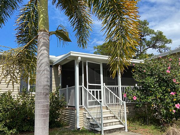 474 Marina Way Colony Cove, Ellenton,Florida 34222 This home is on a rented/leased lot in a 55+ community. 2016 home proudly made by Palm Harbor, an IBHS Fortified Home that is Hurricane Resistant! Upgrades include 3BR/2BA split floor plan with 2 car garage; open concept 1560 SF; Cathedral Ceilings; Luxury Vinyl Flooring, Faux wood blinds throughout, Screened front porch plus upgraded rodent exclusion system. This 2016 Palm Harbor Ventura boasts a rare, split 3BD/2BA floor plan with 1560 SF for living, dining and entertaining. It is light and bright with cathedral ceilings, sheetrock walls, luxury vinyl plank flooring in all the living areas and custom painted neutral walls with crown molding. This home comes partially furnished with turnkey supplies...move in ready and it is within walking distance to a community pool & hall! The open concept living room, kitchen and dining area presents a stunning entry! The living room has a remote controlled ceiling fan and sliding glass door to the rear stoop to the back yard. More than ample space for family and friends to gather comfortably! There is a spacious kitchen with lots of cabinetry, upgraded counter tops, a breakfast bar AND an island with electric for the casual dine or buffet service counter. Perfect for entertaining! It has premium GE appliances including a side-by-side refrigerator with water and ice in the door, range, microwave and dishwasher. The dining area is adjacent to the kitchen with a view to outdoors. Just to the left are French doors to one of the two guest bedrooms that is currently used as an office. It has a ceiling fan, large closet and window that faces the street. (Both of the guest bedrooms are large enough to be used a bedroom, office, den or hobby spaces.) The 2nd guest bedroom is next with ceiling fan, a walk in closet and carpet. Between the two guest bedrooms is the guest bath that has a shower/tub combo and trendy vanity. The master bedroom is at the opposite end of the home off of the living room. It has a remote controlled ceiling fan, carpet, cathedral ceilings custom paint and a master bath en-suite. The master bath has luxury vinyl flooring, dual sinks, upgraded composite counter tops, a walk in shower and a huge U-shaped walk-in closet. The home is sold partially furnished with turnkey supplies to be able to spend your very first night of ownership! The inside laundry is just off the kitchen and includes LG washer and dryer. The door to the garage is also conveniently located here for easy grocery access to kitchen. The two car garage and driveway will park 3 cars and room for a golf cart. The garage is partially insulated/drywall with remote control entry. There is plenty of extra storage! The Goodman HVAC system has been upgraded with surge protection. The home is located on a dead end street in the South Section of the community. The Marina, Nature Preserve, Riverside Pavilion and Fishing Pier, Community Farm, Fitness Center, Dog Park and two pools and community pools are located in this section. The lot rent of $854.40 includes water, sewer, trash, lawn service and all the amenities Colony Cove has to offer. Colony Cove has been named 'Best Retirement Community' six years in a row by the Herald-Tribune of Bradenton. Colony Cove 55+ retirement mobile home community has a wealth of amenities designed to keep up with your active lifestyle. Located in beautiful Ellenton, FL, just inside the Sarasota/Bradenton metro area, the Colony Cove community features beautiful banquet rooms, nice billiard facilities, a private boat dock, and nine community buildings. Great fishing opportunities, huge game rooms and well stocked libraries are also great diversions. Take a dip in one of the six heated swimming pools, or challenge your friend to a friendly match on the pickle ball, shuffleboard or tennis courts. Colony Cove also offers on-site management, laundry facilities, a woodworking shop, two fitness centers ,and much more.