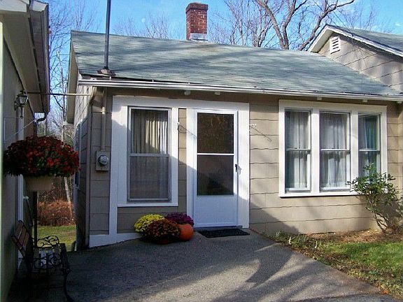 Very charming single-story home carefully updated accenting the character and style. Much larger than it looks from the outside, the spacious floorplan includes a recently remodeled from studs out sizeable entrance/mudroom. Quaint kitchen with a built-in antique hutch and a new picture window in the dining area. Large dining room with a parquet floor and a built-in china cabinet located in the heart of the house with a living room with beautiful hickory floors and a slider to the sunporch and a glass door to the deck on one side and double French doors entering into the foyer and the Master bedroom with a private bath and washer/dryer on the other side. Beautiful natural woodwork. New Nescor replacement windows. New furnace, drilled well and soon to be installed leach field. Full basement, one side finished, with a walkout to the yard. Cool off this summer in the above ground pool surrounded by woods for privacy. Easy commute to Amherst & Greenfield, south & east, and NH to the North.