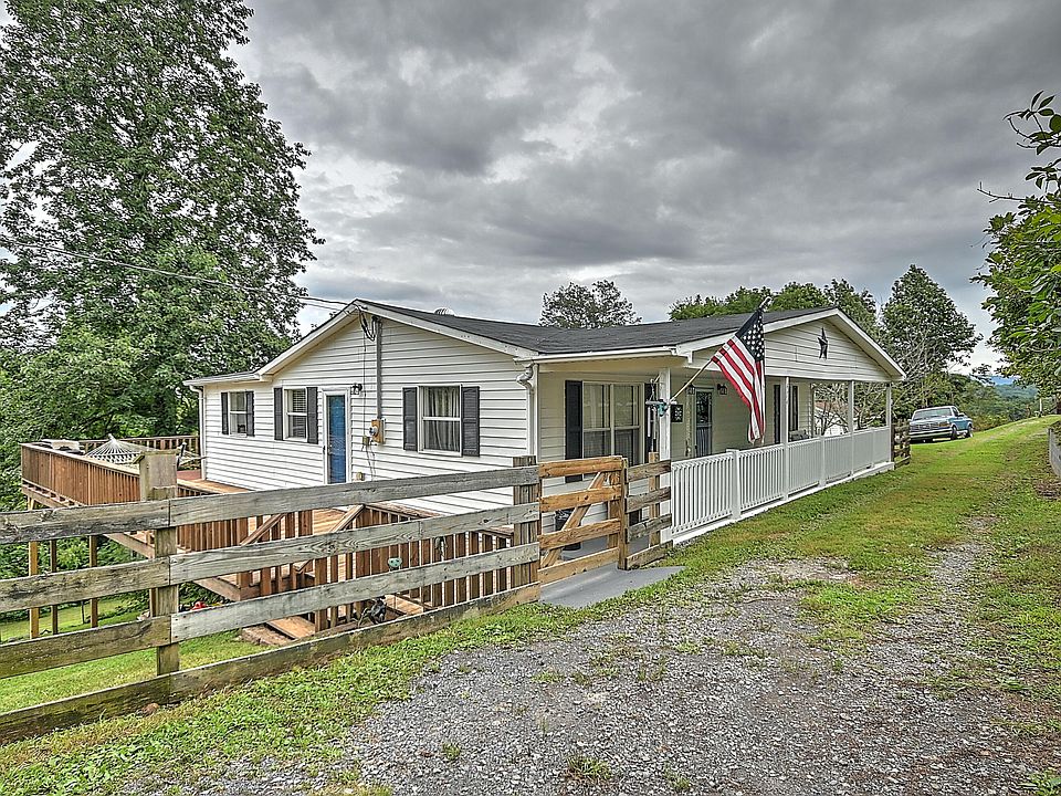 Wide decking around the side and back of the home along with the full porch on the front provide great spots for entertainment and enjoying the surrounding mountainous views. A new roof and electrical panel offer valuable updates, and additional space for a manufactured home provides ample potential for expansion. With well-water, this property is sure to help keep down utility costs for future residents. Additionally, the land being USDA eligible is an added bonus for potential buyers. Buyers agent to verify all information.