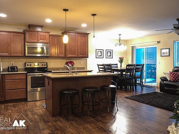 SUPER NICE DUPLEX Great location close to town and ease of access to the Parks Hwy. Large 3 Bedrooms with open concept living and dining. Two bedrooms on lower level and the Master on upper level. Huge bonus area too! The kitchen has an Island for added counter space! Laminate flooring in living/dining areas. Very well kept! Priced below assessed value. GREAT Value HERE.