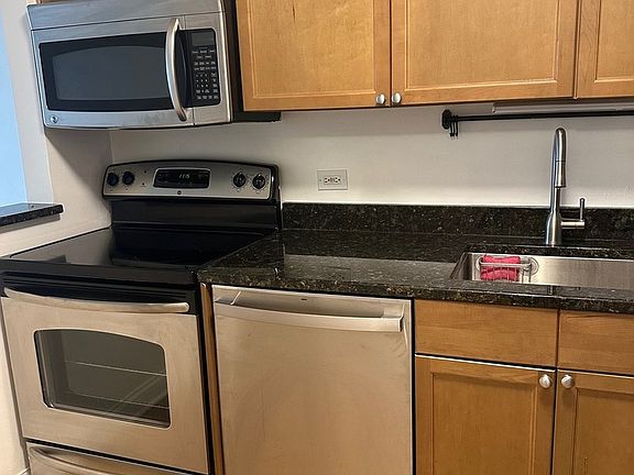South east facing one bedroom unit with views of lake, marina, city, and fireworks. Hardwood floors in living/dining room, foyer and kitchen. Maple cabinets, granite countertops, and stainless-steel appliances. Bedroom with spacious walk-in closet. Smooth ceilings! Full size washer/ dryer in apartment. Full amenity, smoke-free building with fitness center, indoor lap pool, sauna, sundeck with grills and landscaping. 24/7 door staff. Great central location in proximity to public transportation, Michigan Avenue, Navy Pier.