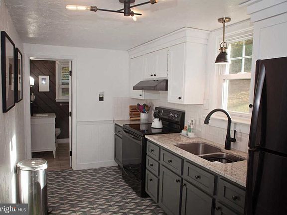 Charming 1930's Bungalow with modern updates is now available in Lower Pottsgrove Township. This move-in ready 2 bedroom 1 bath home has been beautifully remodeled. You can't miss the Calibamboo Hardwood Floors and designer light fixtures as soon as you enter the main living space. The renovated kitchen includes granite counter tops, porcelain tile floor, black stainless steel appliances, and matte black fixtures and cabinet hardware. Next to the the kitchen is the remodeled full bath, complete with new marble top vanity, toilet and flooring. Two nicely sized bedrooms look out to a large, private half acre lot. Storage abounds in this home! The large walk out basement is offers plenty of additional space and is perfect for a workshop or art studio. Under the front porch you will find a storage shed for lawn or gardening equipment. Unique lot spans both sides of Sanatoga Road ensuring unobstructed views of nature. Enjoy your mornings and evenings from the updated front porch, overlooking Sanatoga Creek and a beautiful landscape of mature trees. Newly installed Simonton Windows with transferable lifetime warranty and Larson storm doors. Parking includes 2 driveway spots and additional parking across the street on grass for when guests are visiting. Quick, easy access to Rt 422, shopping, and new Pottstown hot spots like the Blue Elephant and the Alley on High Street.