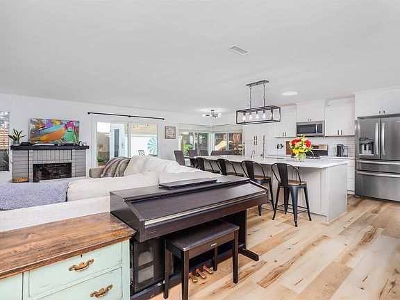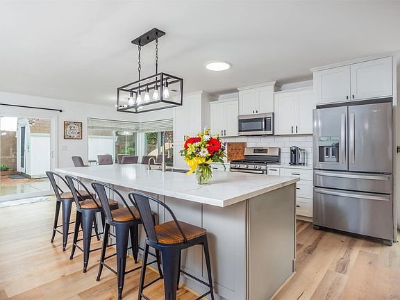 Stunning remodeled single story home nestled on a quiet cul-de-sac enjoying a private, fenced yard. Enter to gaze upon an open concept floor plan with brick fireplace warming large living spaces and an upgraded kitchen featuring quartz countertops, crisp, white cabinetry, stainless steel appliances, and a center island illuminated by a gorgeous pendant light fixture. Open the multiple sliders to invite the outdoors into your indoor world. You will find flexible functionality and extra storage throughout this home! Both bathrooms have been reimagined with a designer’s eye and modern flair. A leased solar system helps keep energy costs manageable. An attached 2 car garage adds convenience and more storage possibilities. The backyard is an outdoor lover’s dream featuring a poultry coop, raised garden boxes, a large, finished shed and plenty of space to enjoy the idyllic Southern California weather. Quick and easy access to freeways, dining, shopping, schools and entertainment venues. This is an incredible opportunity you do not want to miss!