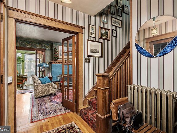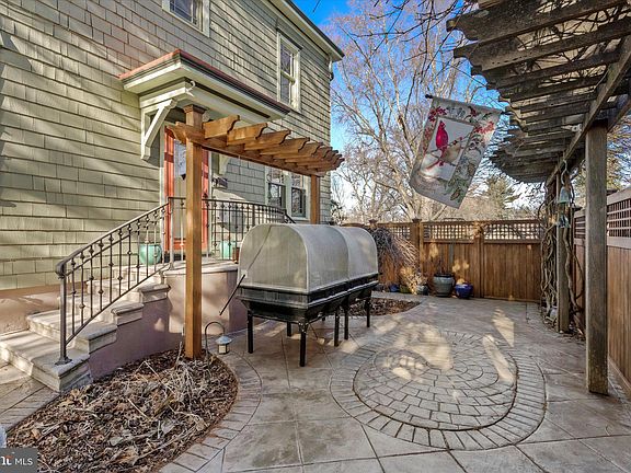 The stamped concrete courtyard of this 1920’s Dutch Colonial makes a stunning first impression and hints at the sophistication within. Recently painted cedar siding and custom Marvin replacement windows add to the exterior appeal. In warmer months, new awnings add a touch of color. Behind the cedar garden gate, lies the Best Flower Garden (2017), per the Ewing Green Team. Enjoy summer evenings under the gazebo or on one of two patios, surrounded by perennial flower beds. Hard wired landscape lighting throughout the yard, adds to the ambiance. Inside, this house has tons of original charm. From the chestnut woodwork to the Bradbury & Bradbury art wallpaper, the first floor is an undeniable feast for the eyes. A stained glass window graces the dining room. The well lit galley kitchen, designed by a former Chef, is updated and serviceable. A powder room is just steps away. A 3-season porch with southern exposure can warm to temps upward of 70 degrees, on a sunny winter day. You can bask in the sunlight, while entertaining, in this charming space. Upstairs, you’ll be surprised by the sizable master bedroom. Another room, complete with vanity and lingerie cabinet is perfect as a dressing room, teenager’s bedroom or nursery. Imported from Paris, the wall mounted fixtures are sleek and contemporary. The updated bath is well appointed with a towel warmer, gorgeous triple medicine cabinet and Jacuzzi tub. Marble, custom tile work and pendant lights are beautifully coordinated. The third floor is a roomy bonus room with under the eave storage, skylights and a split unit for heating and AC. Comfortable year round, this sunny room can serve as a home office, family room, guest space or playroom. NOTE: EWING SCHOOLS - Parkway Elementary - Fisher Middle - Ewing High School