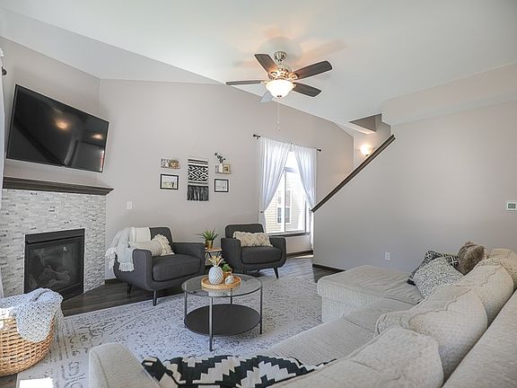 So much to love in this bright 4 bedroom, 3.5 bath open condo. Large inviting LR w/corner gas fireplace & tile surround. Dining area leads to outdoor deck w/ wooded views. Kitchen boasts dark maple cabinets, solid surface counter tops, breakfast bar & SS appliances. LVP flooring throughout the main. Upstairs you will find a master suite w/vaulted ceiling, WIC, & private bathroom w/double sinks. 2 additional bedrooms, bathroom & laundry upstairs. Walkout LL family room, bedroom & full bath finished 2020.