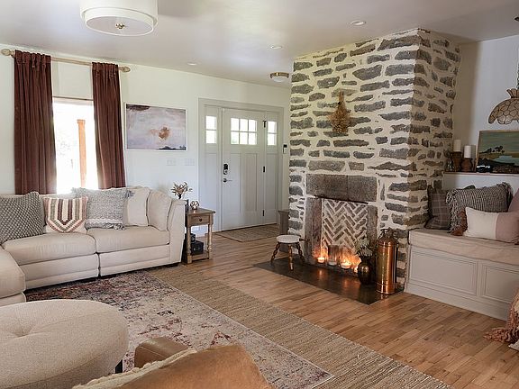 **All appliances included. Option to buy house furnished as photographed.** Located in the heart of central KY, this 3 bedroom 3 bathroom eclectic farmhouse boasts of solid oak shaker kitchen cabinets, quartz countertops, porcelain tile counter-to-ceiling kitchen backsplash, solid oak hardwood floors, porcelain tile kitchen/bathroom floors, custom shower tile in each bathroom, master en suite bathroom with closet, double vanity, free standing tub and spacious shower with body sprays, rain shower head and double niche, true shiplap paneling, cedar beams and cedar lined window frames. While enjoying the custom aesthetics of the interior of the house, the outside views are what makes this property one-of-a-kind. The 3 acre property is situated between two large farms within view of 2 ponds and cattle occasionally grazing on the rolling hills. Enjoy these tranquil views the property offers from one of the 3 porches or from the custom fire pit made with antique brick pavers from the early 1900s, that sits next to a tobacco barn on the property. Designed with impeccable attention to detail, every square foot of the house serves a purpose. From the reading nook carved out between the limestone fireplace to even the decorative exterior dormer that can be utilized as extra storage, there is no space left untouched. Enjoy the country life with the convenience of being only 5 minutes from downtown Harrodsburg, within 20 minutes of Herrington Lake and Danville, and within 45 minutes of Lexington and Frankfort. Contact Ashlyn Begley at 859-588-6003