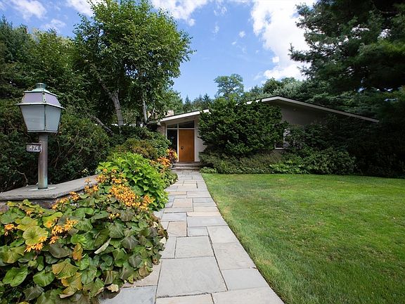 Seize the rare opportunity to own this architectural gem, a stunning Mid-Century Modern ranch situated in Worcester’s most sought-after neighborhood! Custom designed to harmonize elegance and functionality, this residence offers breathtaking views with renowned gardens and serene stream and waterfall through expansive walls of glass. Inside boasts soaring ceilings, and an abundance of natural light. The thoughtfully designed layout includes a first-floor primary suite, two home offices, and an open-concept living space seamlessly connecting the great room, dining area, library, and heated sunroom. The walkout lower level offers many possibilities as a mirrored exercise room, or home theater. Premium features include: stone and cedar wood façade, copper-lined chimney & gutters, pristine millwork, high end stainless counters in kitchen/office/bath, parquet floors, Kentucky bluestone fireplace, walk-in wet bar, oversized heated/cooled garage and commercial-grade generator.