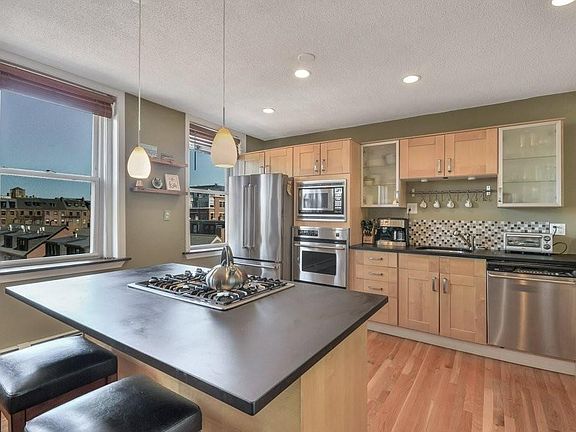 City skyline views from this gorgeous corner penthouse home located just steps from all that the South End has to offer. Walk in to bright open-concept living/kitchen area with large center island, complete w/ gas cooking, ideal for entertaining. Kitchen boasts slate countertops & stainless steel appliances including built in microwave. Five large windows flood the living area in natural light, highlighting the gleaming hardwood floors and cozy wood burning fireplace. Bonus dining/office area is ideal for extra storage. Marble tile bath features a Jacuzzi tub, Silestone counter & built in vanity. Two nicely proportioned bedrooms with hardwood floors, city views and plenty of closet space. In-unit high efficiency washer and dryer for added convenience. Move right in and enjoy this fantastic location! Walk to public transportation, easy access to highway and most importantly all of the great South End shops and restaurants... BRAND NEW HUGE ROOF DECK AS WELL