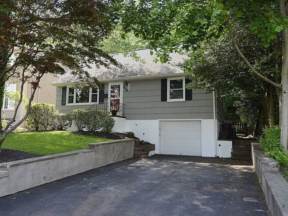Terrific 4 bedroom, 2 bath cape with open floor plan just steps from NYC transportation. Some of the features include hardwood floors, updated kitchen with stainless steel appliances, (refrigerator & dishwasher brand new), recently refinished wood cabinets & breakfast bar. Good sized bedrooms, updated baths. Finished basement with new carpeting, recessed lighting, bar (complete with sink and summer kitchen section) is great rec room or 'man cave.' Attached garage has direct entry to house and driveway has space for 4 cars. Central air, newer windows and roof. Spacious yard with mountain view features patio and gas grill with direct hookup. NYC bus across the street. Move right in and enjoy!