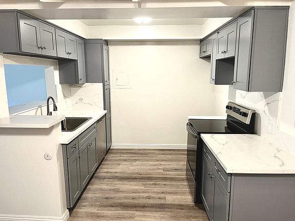 Unit 9 is a spacious 1 bedroom apartment on the lower level with brand new hardwood laminate flooring. The unit has an outdoor front yard area and comes with 1 secured parking space, completely remodeled kitchen, new kitchen cabinets and countertop, a new range and a new dishwasher. Completely remodeled bathroom, new shower/tub and new vanity. Swimming pool and onsite laundry. Apartment building has secured entrance. One year lease. No pets allowed. No smoking. Renter responsible for electric utility cost. Refrigerator can be provided for extra $50/month.