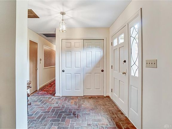 There is an interesting history to this 4 bedroom, 2 bath home w/living, dining, fam.room, country kitchen (with a second fireplace), newer 50 year roof & newer HVAC. Needs a loving decorator touch inside, but impeccably maintained by 1 owner whose father built the "Castle House" on Whipp Rd.(where this owner grew up). Located in historic Woodbourne Village w/ peaked roof line & stone landscaping dredged from Hole's creek. Much of the outdoor brick on the patio is original brick from downtown Dayton Streets. The wrought-iron fencing is also antique from another era. The full brick-wrap elevation & multi-angled & peaked roof-line lends a French Country feel and is demonstrative of how architecturally advanced this owner was when he built the home. Another architectural memory is the antique stain-glass skylight which was re-purposed for a cathedraled family room ceiling. And...did I mention the floor safe, private yard, garden & storage shed built from re-purposed wood & brick?